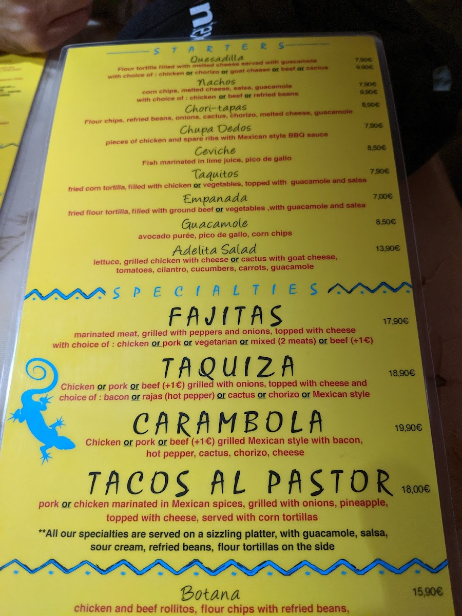 Fajitas Menu